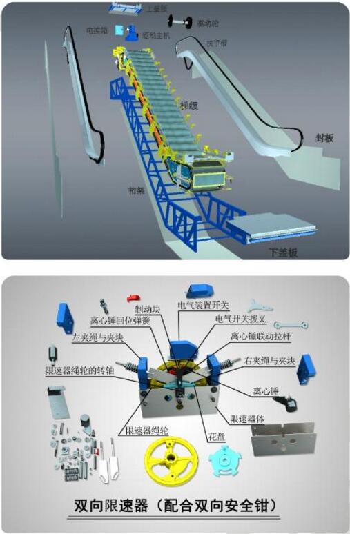 扶梯安全装置相关知识 l 梯级的安全开关或装置 l 扶手带的安全开关或装置 l 链条松(断)的保护开关或装置 l 梯主机运行速度检测和运行方向保护的装置 |