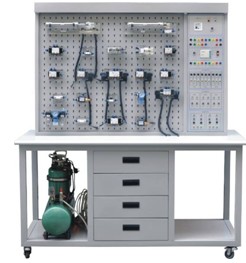 3、配备工业用常用气动元件,且均配有过渡底板,可方便、随意地将元件安插在实验面板上(面板为“网板型”铁板冲压成型)。回路搭接采用快换接头,拆接方便快捷。