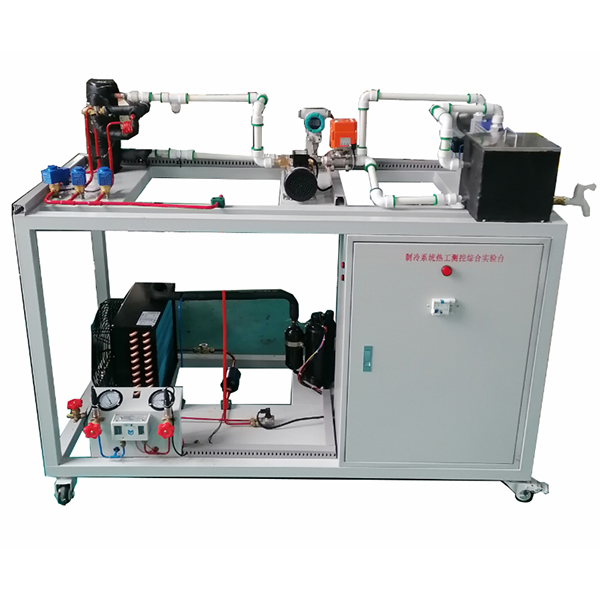 制冷系统热工测控综合实验台,制冷系统热工测控实训装置采用蒸汽压缩式制冷循环系统,配备全封闭式制冷压缩机、冷凝器、蒸发器等制冷系统真实部件,并设有智能温度调节仪、流量计、压力表、电压表、电流表等测量仪表。不但能开设制冷压缩机性能参数的测定实训,还能进行制冷循环基本原理的演示实训。适用于职业院校制冷专业相关课程的教学实训。