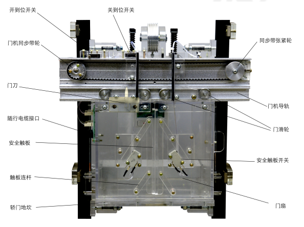 本电梯是根据最常见的升降式电梯结构,采用钢管焊接一体而成,表面经过磷化喷塑处理、具有良好的结构刚性。为了便于教学,电梯各重要机械部件均采用透明有机玻璃,完全仿照真实电梯的结构缩小精制而成。 (包括:限速器、轿厢、层门及门厅立面、轿门、轿厢、机房底板、导轨支架……)为了使电梯运行控制更加精密可靠逼真,设计了与实际电梯比例缩小的铝合金轿厢对重导轨、及轿门门机导轨、层门导轨。