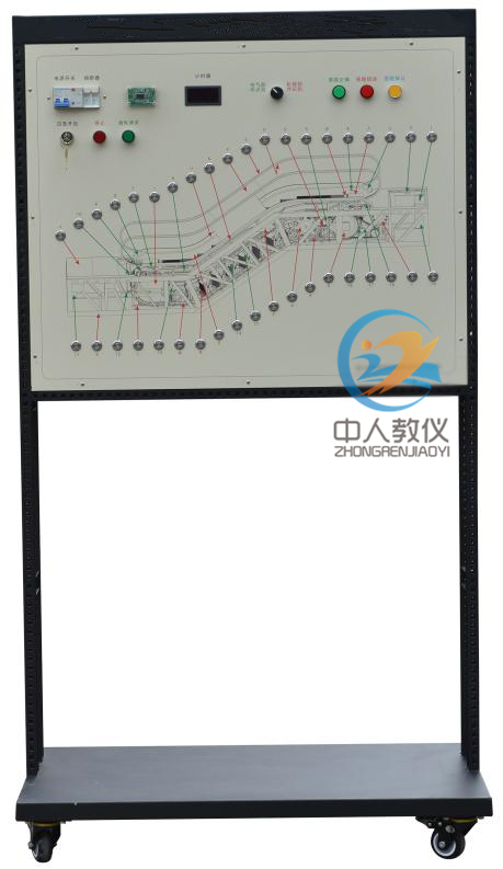 本实训台把电梯机械部件和电气部件以结构图的形式印制在台面上,并设计相对应的选择按钮,教师通过设置故障并以选择题的方式供学生识别选择,学生根据自己掌握的知识进行自由选择练习,解答正确或错误都会有相应的信息提示,可作为学生电梯专业基础知识掌握情况的考核使用。