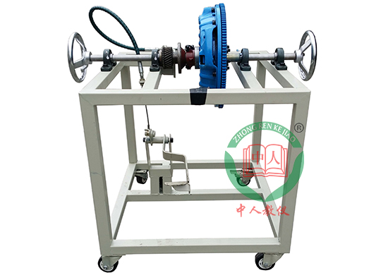 2.手摇输入轴,模拟发动机飞轮转动,踏下离合器踏板,可真实演示拖拉机离合器的工作过程。