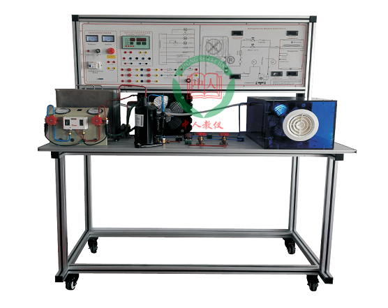 恒温恒湿机组系统实验装置是采用直流式空气处理系统,并配置压缩机、风冷冷凝器、蒸发器、加湿器、电加热器和风管等真实部件,可测量压力、温度、湿度等过程参数。通过对本装置的实验,能使学生熟悉直流式系统的空气处理过程,并得到热工测量和计算的基本训练。本装置适用于“制冷空调原理及应用”、“制冷空调技术”、“建筑电气控制技术”等课程的实验教学。