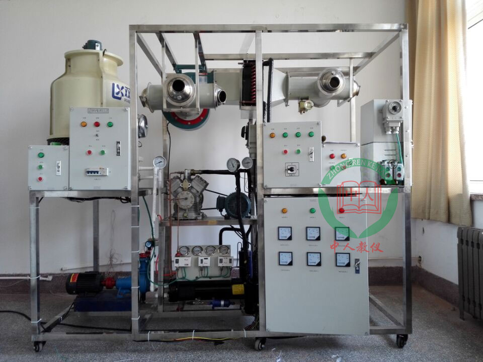 ʵѵװÖÃÖ÷ÒªÓÉ¿ØÖÆÌ¨¡¢Ë®ÀäÖÆÀä»ú×é¡¢¸ßηç»ú£¬·ç»ú¹ÜµÀ£¬¹ÜµÀµ÷½Ú·§ÃÅ¡¢Ö÷»úʵѵģ¿é¡¢Á¬ÖáʽÀäÈ´Ë®±Ã£¬ÀäÈ´Ëþ£¬Î¶ȺÍѹÁ¦´«¸ÐÆ÷µÈ×é³ÉζȺÍѹÁ¦±íµÈ×é³É