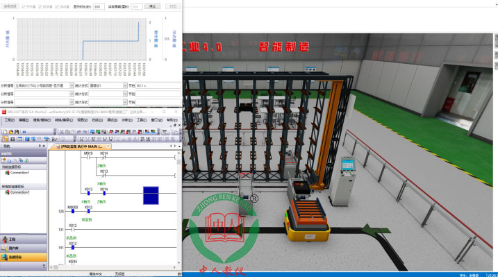 软件支持三菱、西门子等主流品牌的虚拟PLC仿真器,虚拟PLC实时驱动仿真场景的虚拟设备运行,PLC编程开发软件能下载PLC程序、实时监视虚拟PLC的程序运行。