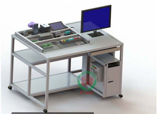 设备由实训屏(内置电源)、实训桌、储物柜三大部分组成。钢制表面经高温喷塑处理,美观大方且有效起到防锈绝缘的作用;电源箱的布局依次为电源保护装置、电源指示装置、电源输出;网孔板一块;实验桌底部装有至少4个导向轮,方便设备移动;储物柜采用标准结构和抽屉式,用于存放工具以及实训资料。