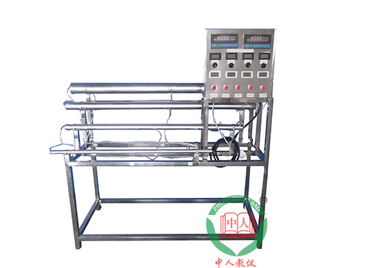 不同长度和直径的电镀紫铜管四根,管内设置加热器,固体调压模块无机调节加热,测温传感器,电功率测试数显仪表,万能信号输入巡检仪显示温度,各管配有温度控制仪表,不锈钢台架及控制屏等。