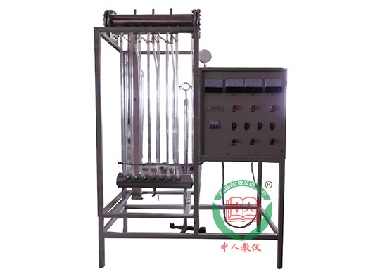 模拟工业锅炉上的上锅筒(可视)、下集箱,玻璃上升管、玻璃下降管,绕在玻璃上升管的电加热器,加热控制开关组,集成调压模块调节电流电压,电流表,电压表,不锈钢支架等。
