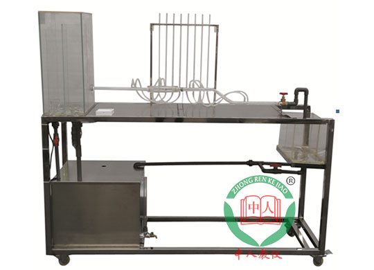 蓄水箱、水泵、有机玻璃实验水箱、有机玻璃计量水箱、刻度标尺、秒表、玻璃温度计、测压管、阀门、不锈钢框架。
