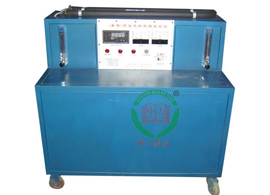 电热加热器水箱,套管换热器,不锈钢冷、热原水箱,玻璃转子流量计,顺、逆流管阀,加热由固体调压模块无级调节,由8路万能信号输入巡检仪显示的温度测试系统等。
