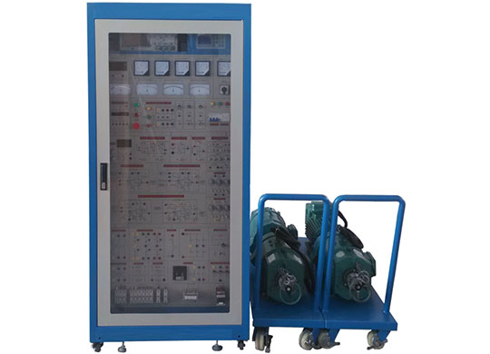 实训装置由实训控制柜和直流电机组、三相鼠笼异步电机,变频调速器,加载电阻箱组成。实训控制柜采用标准工业机柜结构,由大6部分组成: