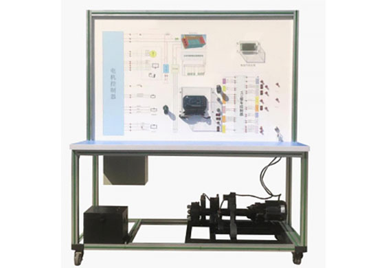 检测控制面板(装有各种检测端子,1448×940mm彩色电路图和工作原理示意图)、仪表、点火开关、电机控制器、车载充电器与充电接口、DC-DC转换器、锂动力电池组、大电流继电器、电动车电机、刹车开关、档位开关、油门控制装置、电源总开关、急停开关、辅助蓄电池(12V45AH)、一体化全铝合金型材搭建的移动台架(1500×700×1700mm 带自锁脚轮装置,带安装检测端子的原理面板,面板1448×940mm)、设备操作说明书。