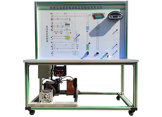 检测控制面板(装有各种检测端子,1448×940mm彩色电路图和工作原理示意图)、组合仪表、点火开关、电机控制器、车载充电器与充电接口、DC-DC转换器、锂动力电池组、电动车电机(48V1KW直流无刷电机、48V1KW开关磁阻电机、48V1KW轮毂电机、60V2KW交流异步电动机、60V2KW交流永磁同步电机各1套 )、刹车开关、档位开关、油门控制装置、大电流继电器、电源总开关、急停开关、辅助蓄电池(12V45AH)、一体化全铝合金型材搭建的移动台架(1500×700×1700mm (带自锁脚轮装置,带安装检测端子的原理面板,面板1448×940mm)、设备操作说明书。