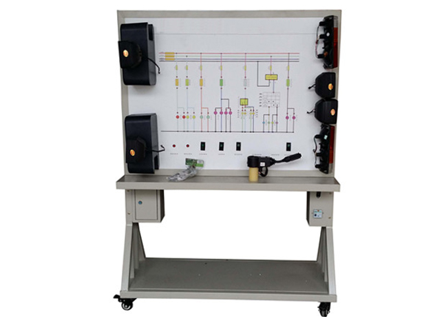 2.示教板面板采用耐创击、耐污染、防火、防潮的高级铝塑板,表面经特殊工艺喷涂底漆处理;学校学员可直观对照电路图和实物,认识和分析灯光系统的工作原理。