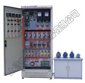 该装置按标准电气控制柜设计制造规格,充分利用双面位置,柜内装有完成各种照明电路所需的单相电度表、日光灯、单联开关、插座、感应开关、漏电开关等,以及电气控制所需要的多种低压电器,如漏电断路器、熔断器、电流互感器、交流接触器、时间继电器、热继电器、中间继电器、行程开关、按钮、信号灯、转换开关、电压表、电流表、功率表及电度表等,为了延长电器使用寿命,各电器的接点都与接线端子相连,再由接线端子与被控制电气连接。