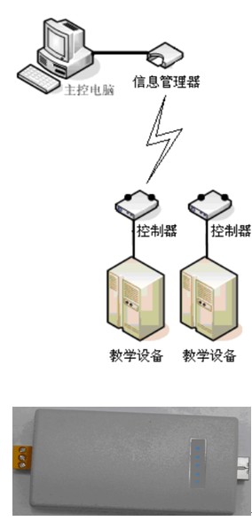 当用教师计算机操作设备故障时,需采用此信息管理器。该信息管理器通过计算机的USB 口连接,采用 USB2.0 传输数据。信息管理器的通信总线可以选择 CAN总线、485总线或无线。