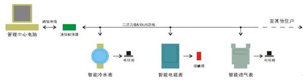 1)管理中心:由系统管理电脑、三表远传自动计量管理软件、通信转换器和通信电缆组成