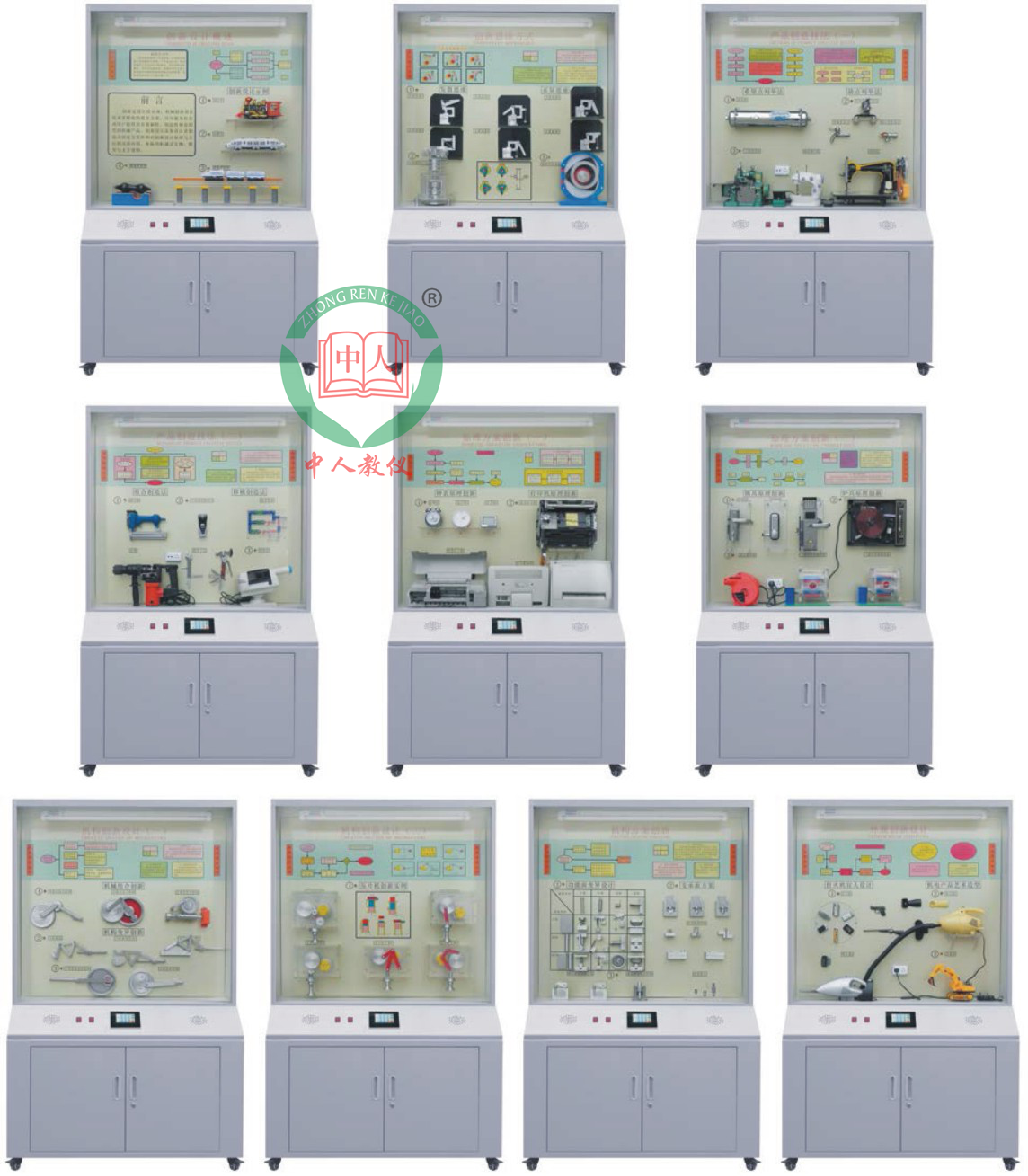 机械创新设计陈列柜按国际标准流行设计,采用各种新颖机电产品外,欺其余模型全部用铝合金和有机玻璃制作,每柜进行彩喷图文说明,介绍机械创新设计的基本原理与方法,对提高机械创新意识与创新设计能力具有重大作用。是机械创新实验室内主要教学设备。