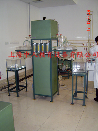 主要配置:有机玻璃集水池,有机玻璃污泥曝气池4个,原水箱,配水箱,空气压缩机,水和气转子流量计,防腐水泵,调速搅拌机等。