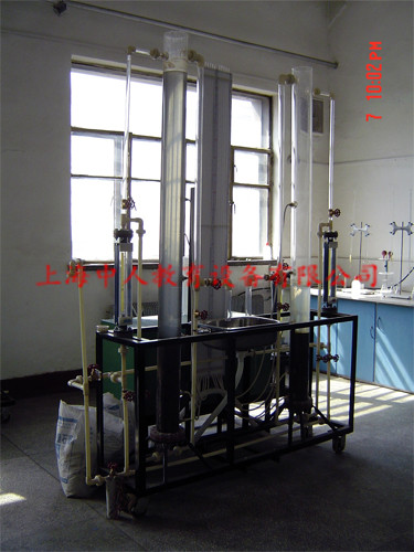 主要配置:有机玻璃过滤柱Φ0.15×2m 2根,1.5KW防腐水泵、反冲洗进水转子流量计0-2.5m3/h1台;过滤进水转子流量计0-400L/h 2台;测压板、测压管及连接阀门,PVC管道及调节阀门,不锈钢水盆及放水管,PVC板水箱,可随时移动支架等。